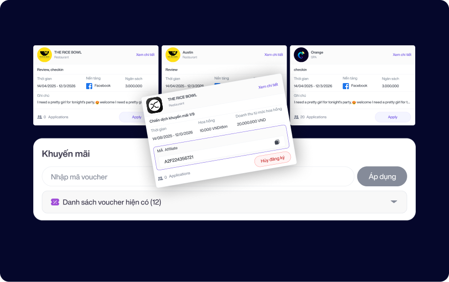 Đơn giản hóa chiến dịch Affiliate và phân phối Offer với hệ thống KOL MarketingCác chiến dịch đang diễn ra