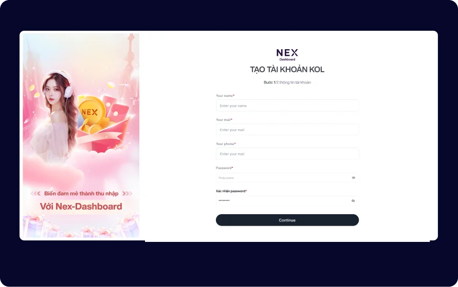 Điền thông tin cơ bản và xác thực để bắt đầu hành trình cùng nền tảng.