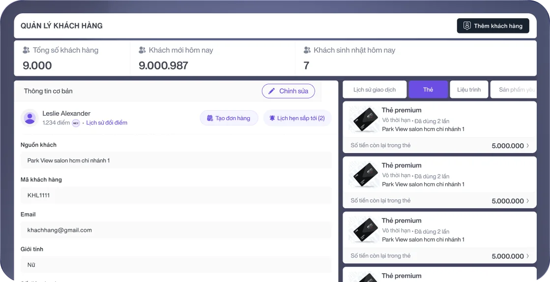 Quản lý toàn diện – Dễ dàng kiểm soát mọi hoạt động Spa